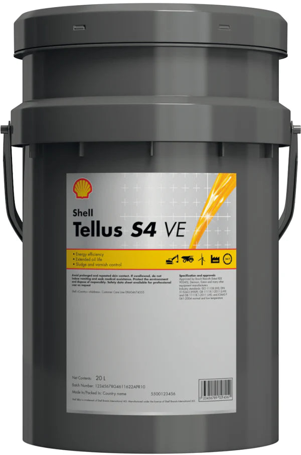 Shell Tellus S4 VE 46, en avansert syntetisk hydraulikkolje basert på Gas-to-Liquid (GTL) teknologi. Den er utviklet for å gi ekstra lang levetid, energieffektivitet, og bredt temperaturområde i både stasjonære og mobile applikasjoner.